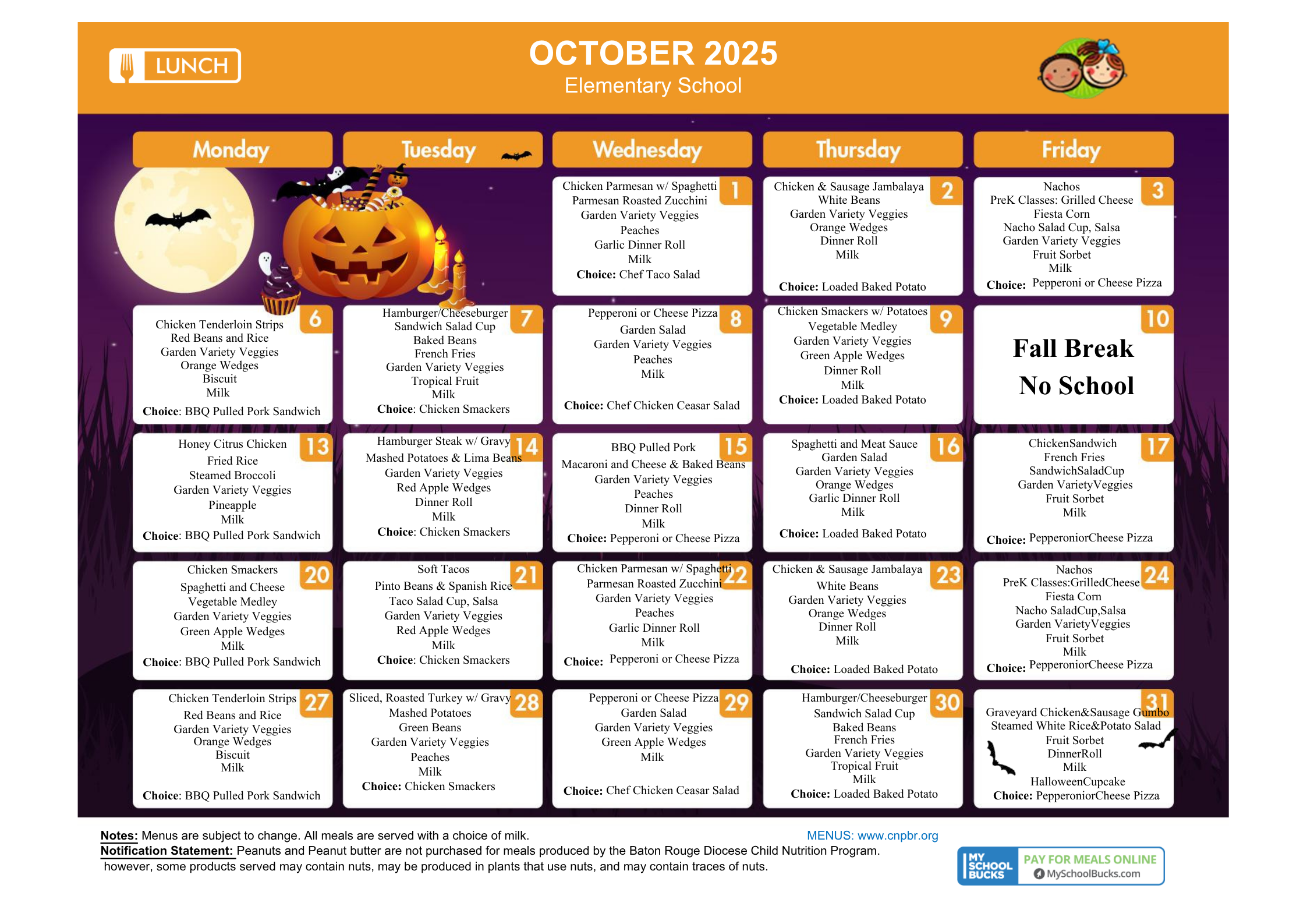 For all cafeteria news please go to the Child Nutrition website at www.cnpbr.org